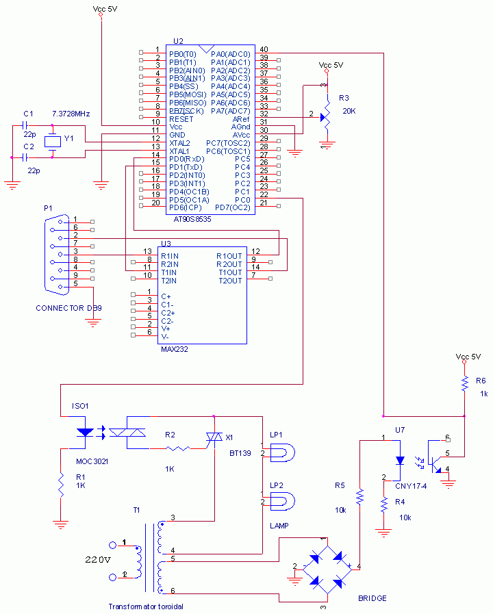 - Reamintesc: functionarea MAX 232 implica si 5 condensatori de 1uF – ei nu apar in desen deoarece se conecteaza standard – si schema se gaseste in orice .pdf cu descrierea MAX 232.