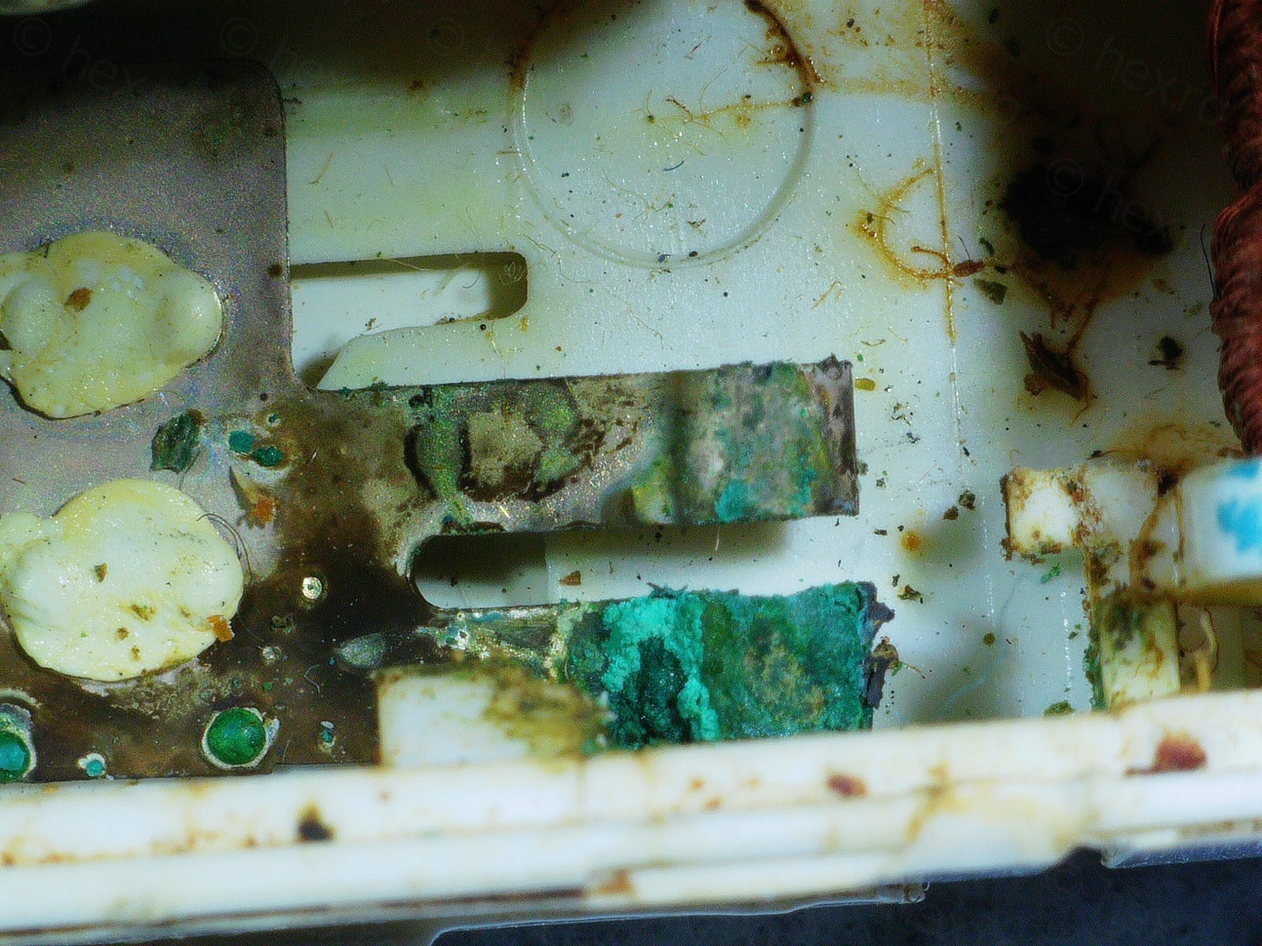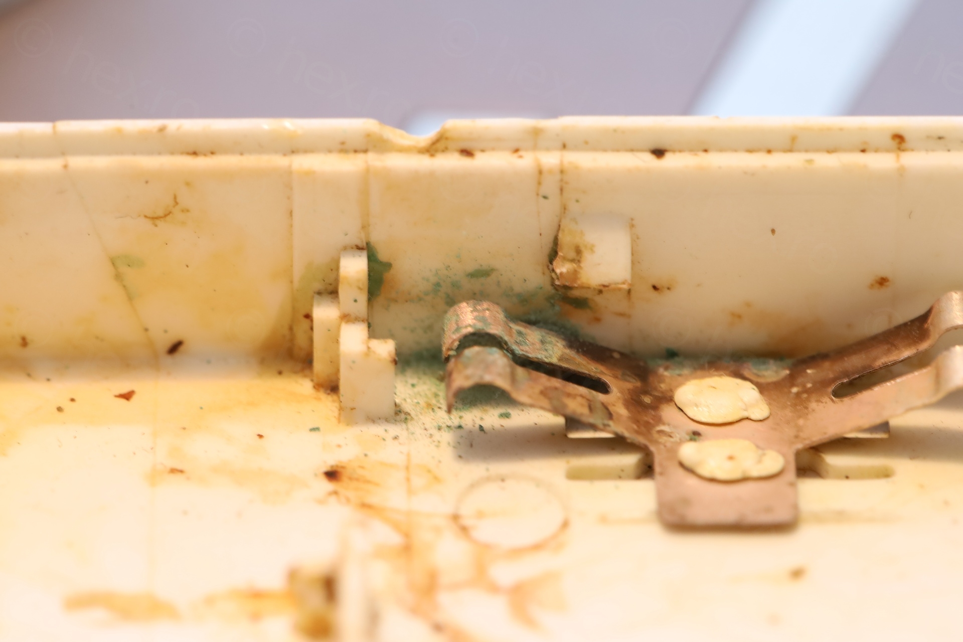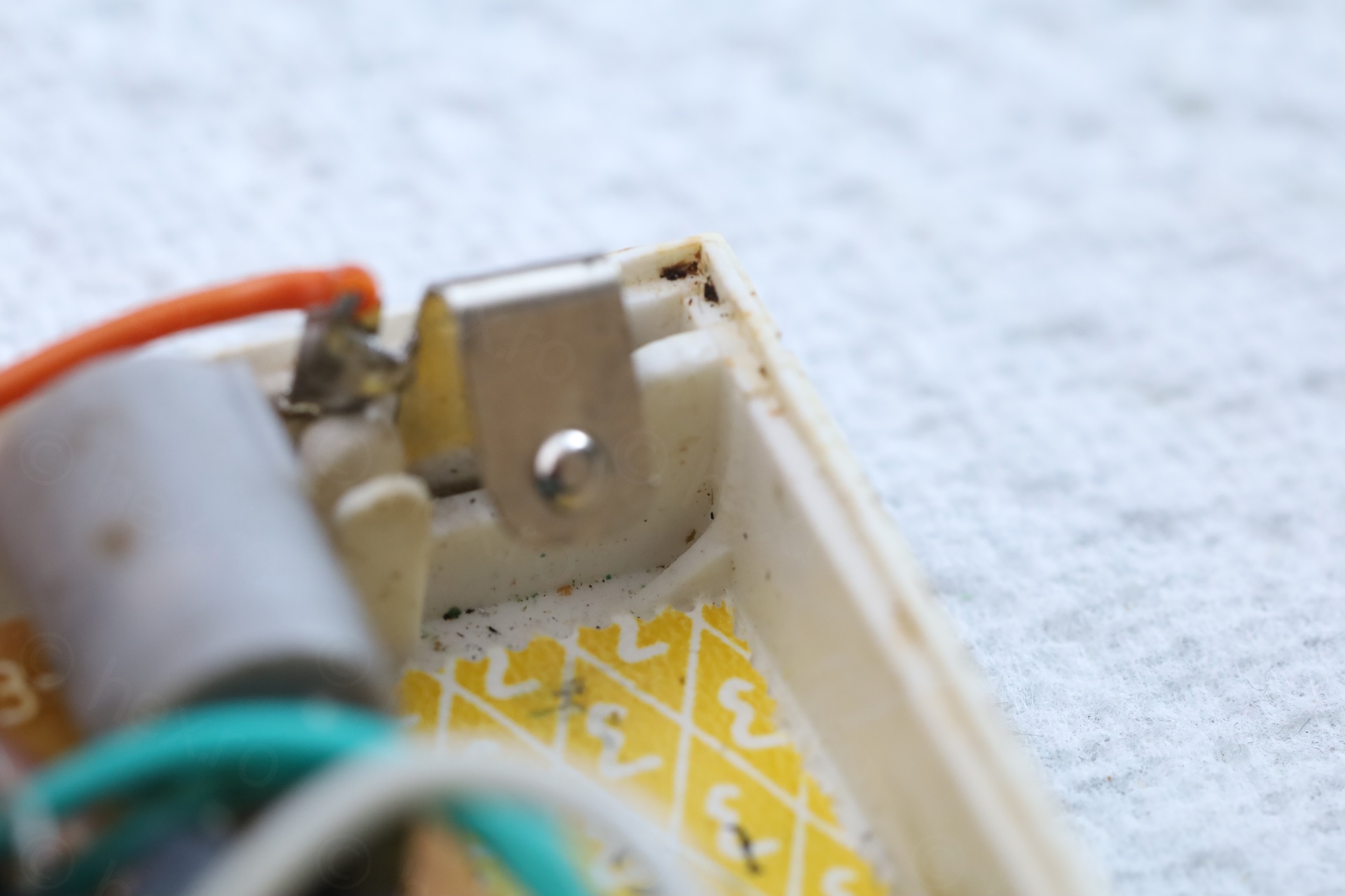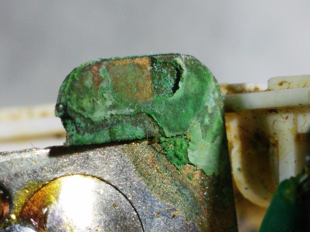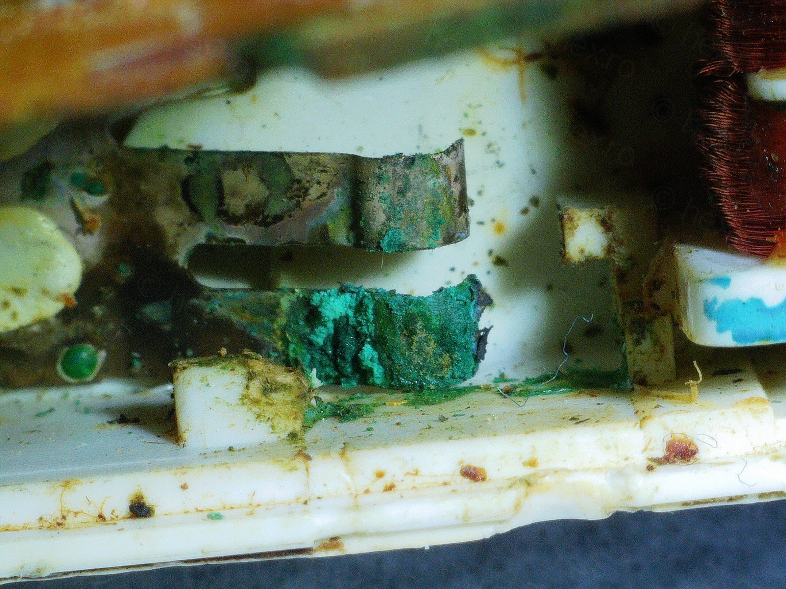 - Heavy corrosion on the blade contacts of the two buttons and on the battery