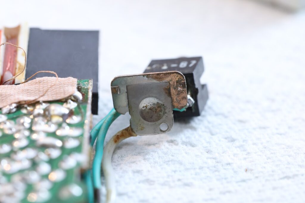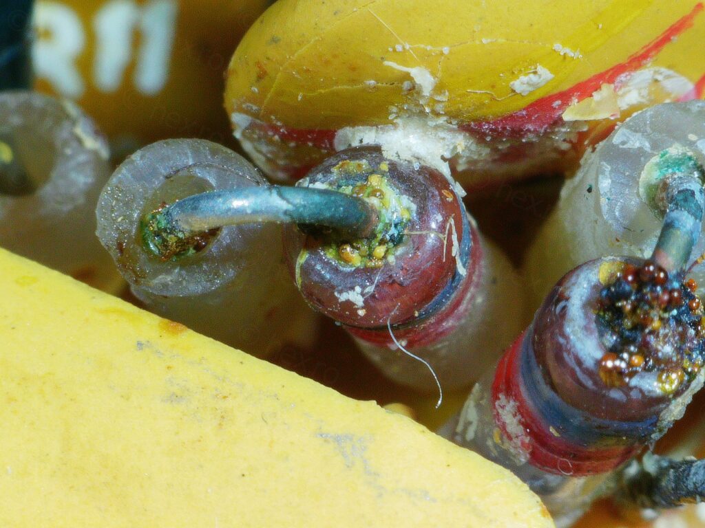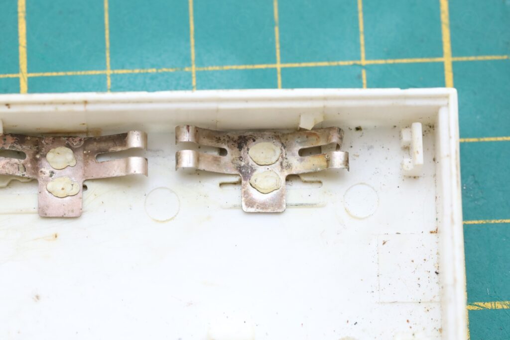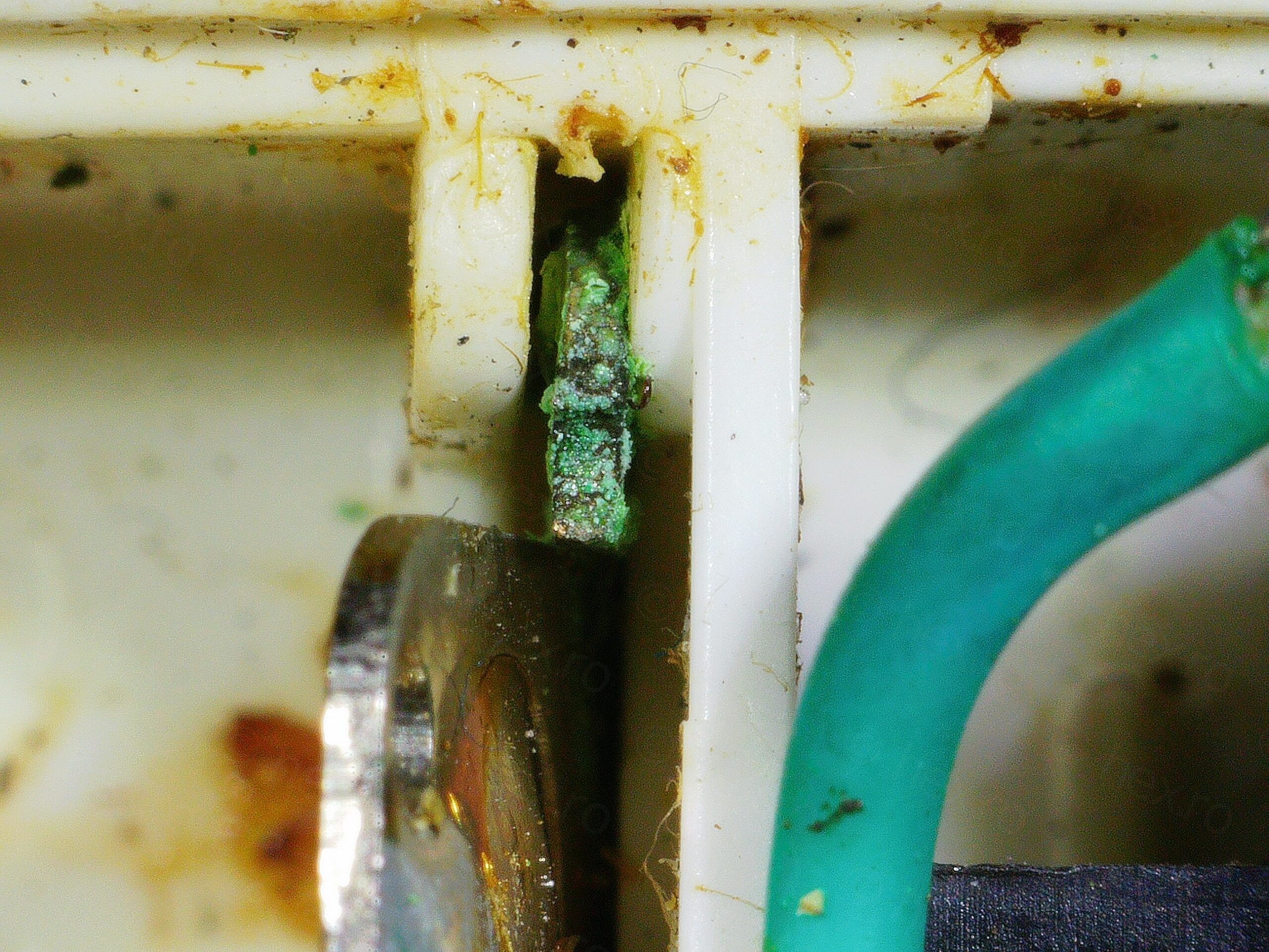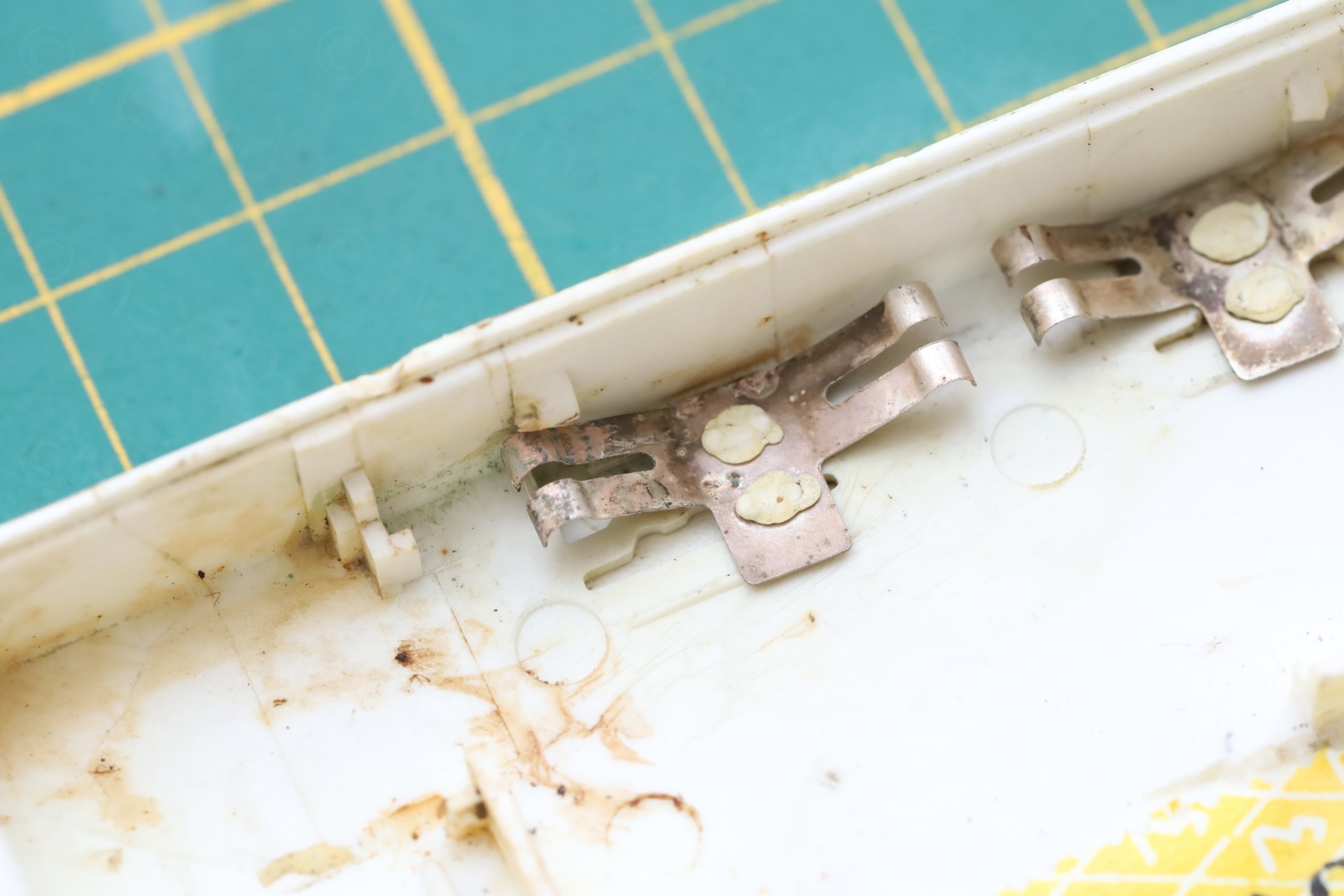 - Heavy corrosion on the blade contacts of the two buttons and on the battery