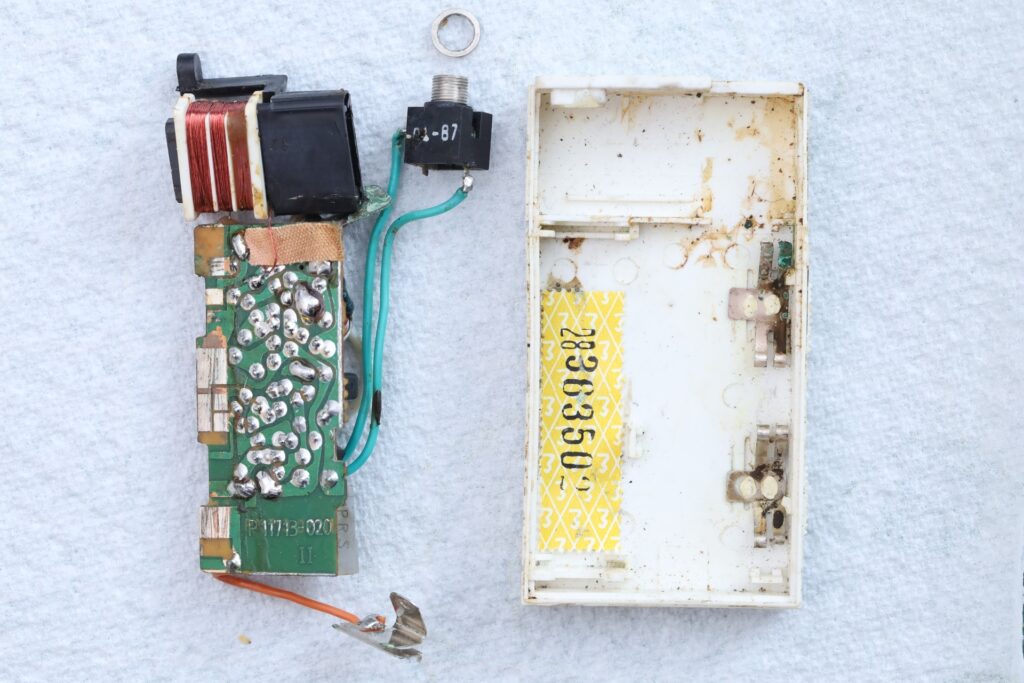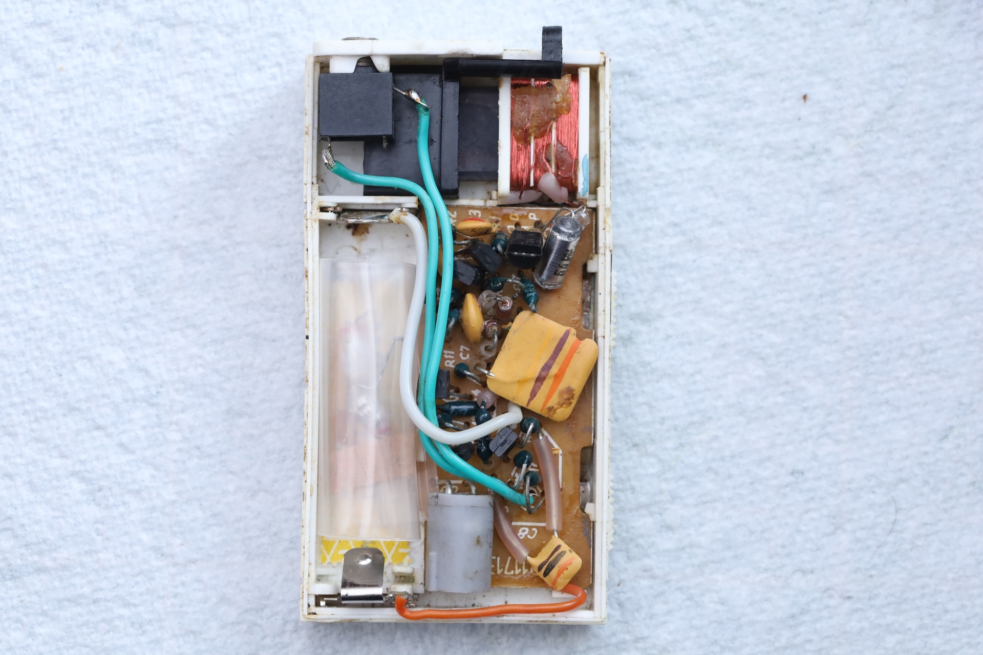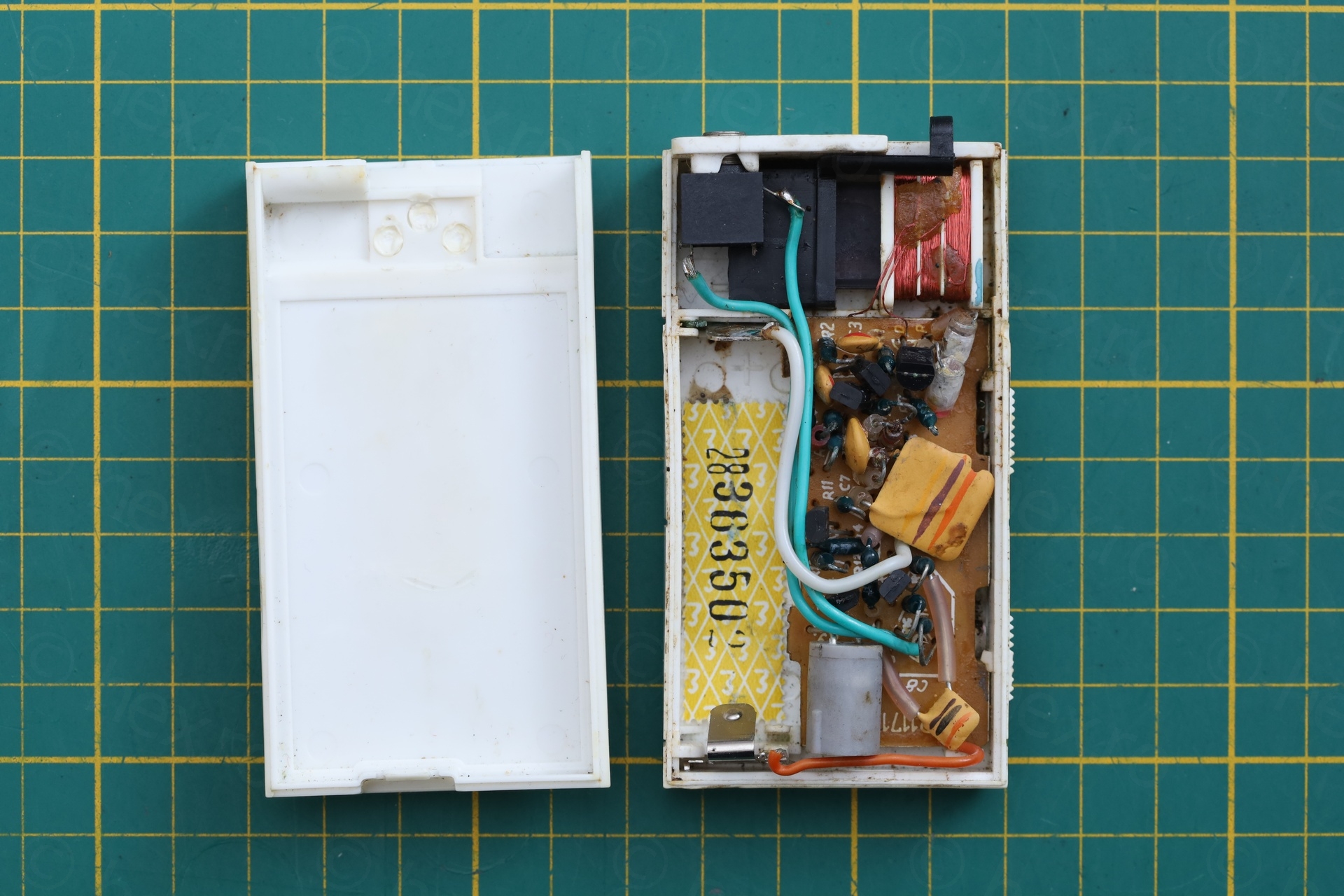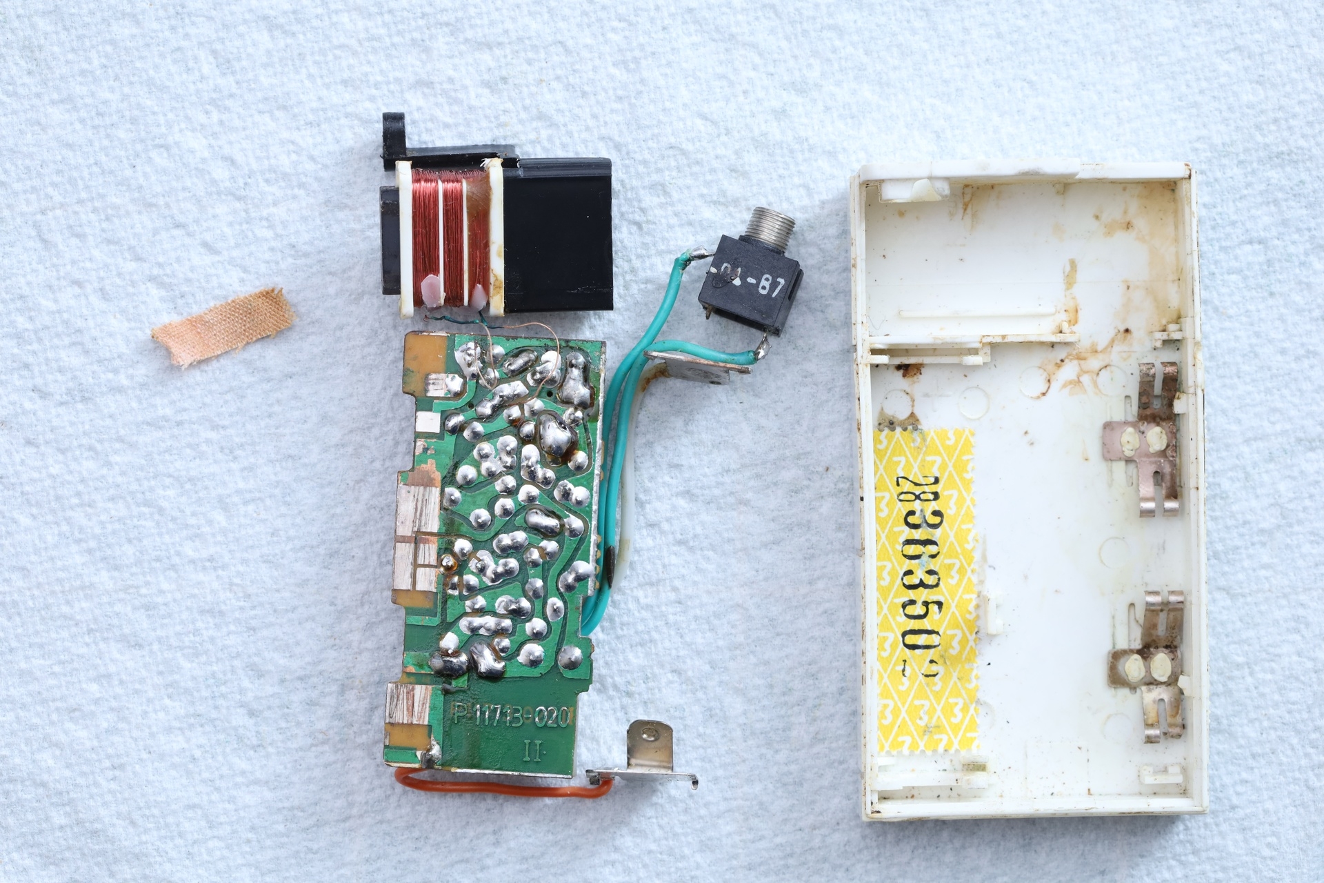 This radio had a bad life, cracked plastics and lots of corrosion. Feels good to have it fixed, especially since it brings back a lot of nostalgia for me. I will keep the original parts I took out, and will be on the lookout for smaller 56pF capacitors.