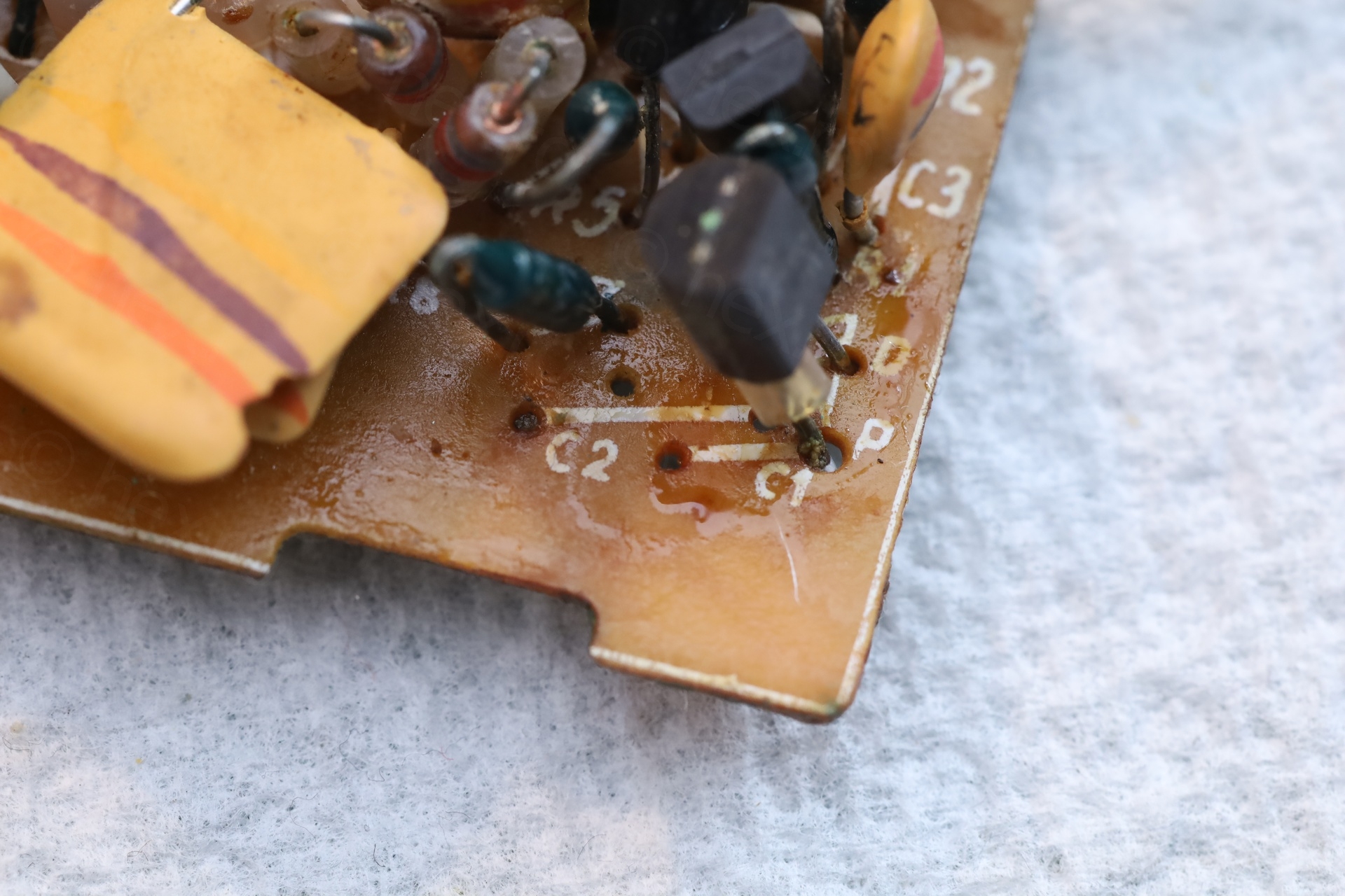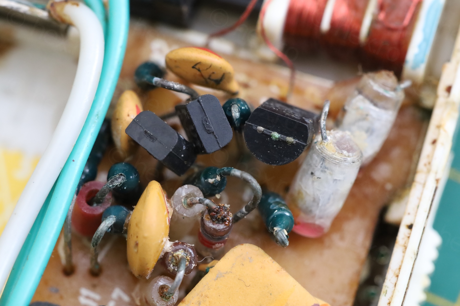 The positive thing is that at least the audio amplifier part of the radio works fine. The AM decoding is also fine, Germanium diodes weren’t affected by the corrosion. But still, where is the problem ?