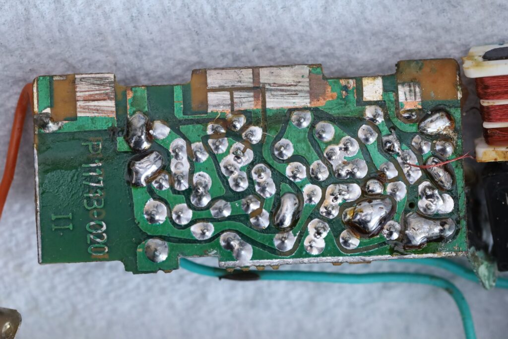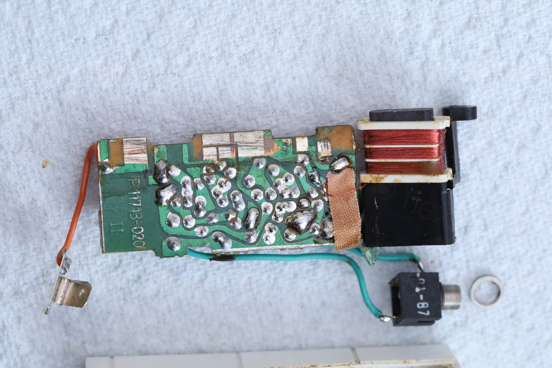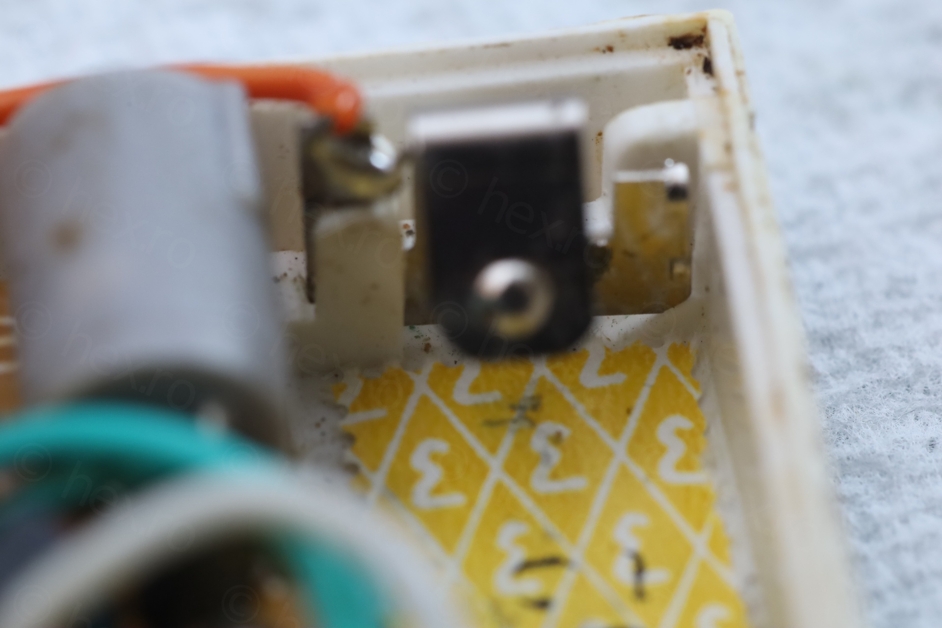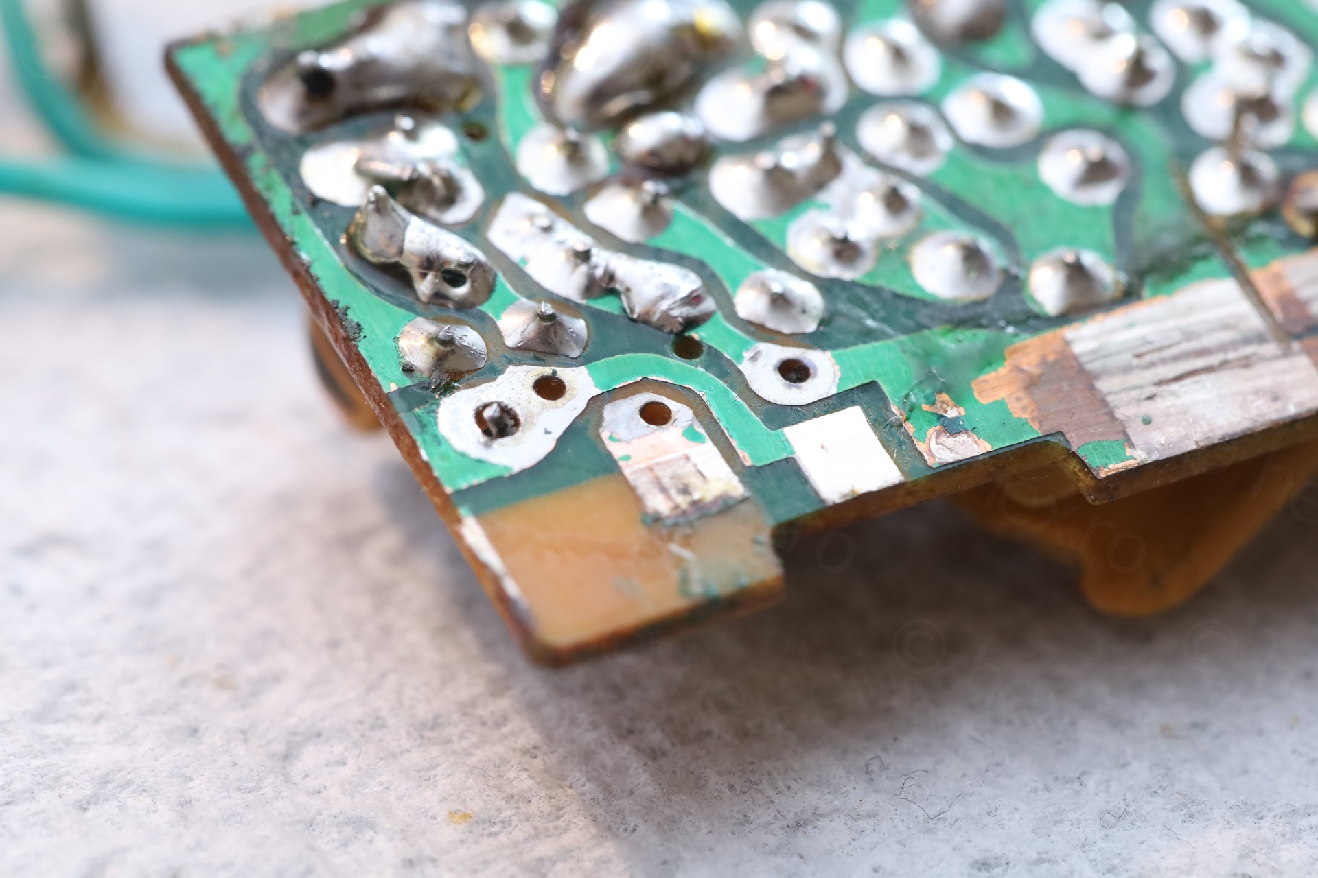 I proceeded to take the circuit board out. The case was very dirty, the blade contacts of the buttons were very corroded, but at least, the soldering looked original: