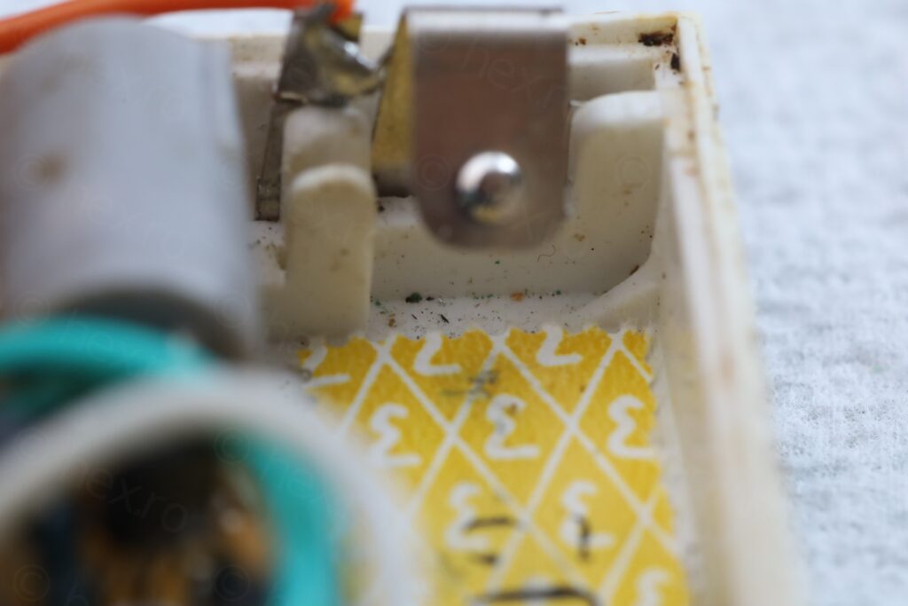 Thankfully there was plenty of material. The metal blade contacts of the two sliding switches were fragile, since they are attached with plastic that is melted. One of the blades (lower right is bent weirdly, but I left it as is, it still makes contact), out of the same fear – a bit more pressure and they’d snap.