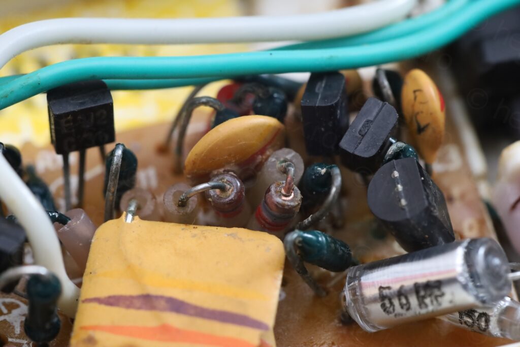 The same treatment was applied to the diodes and the JFET which had corrosion on its middle pin on top. Photos after, below:
