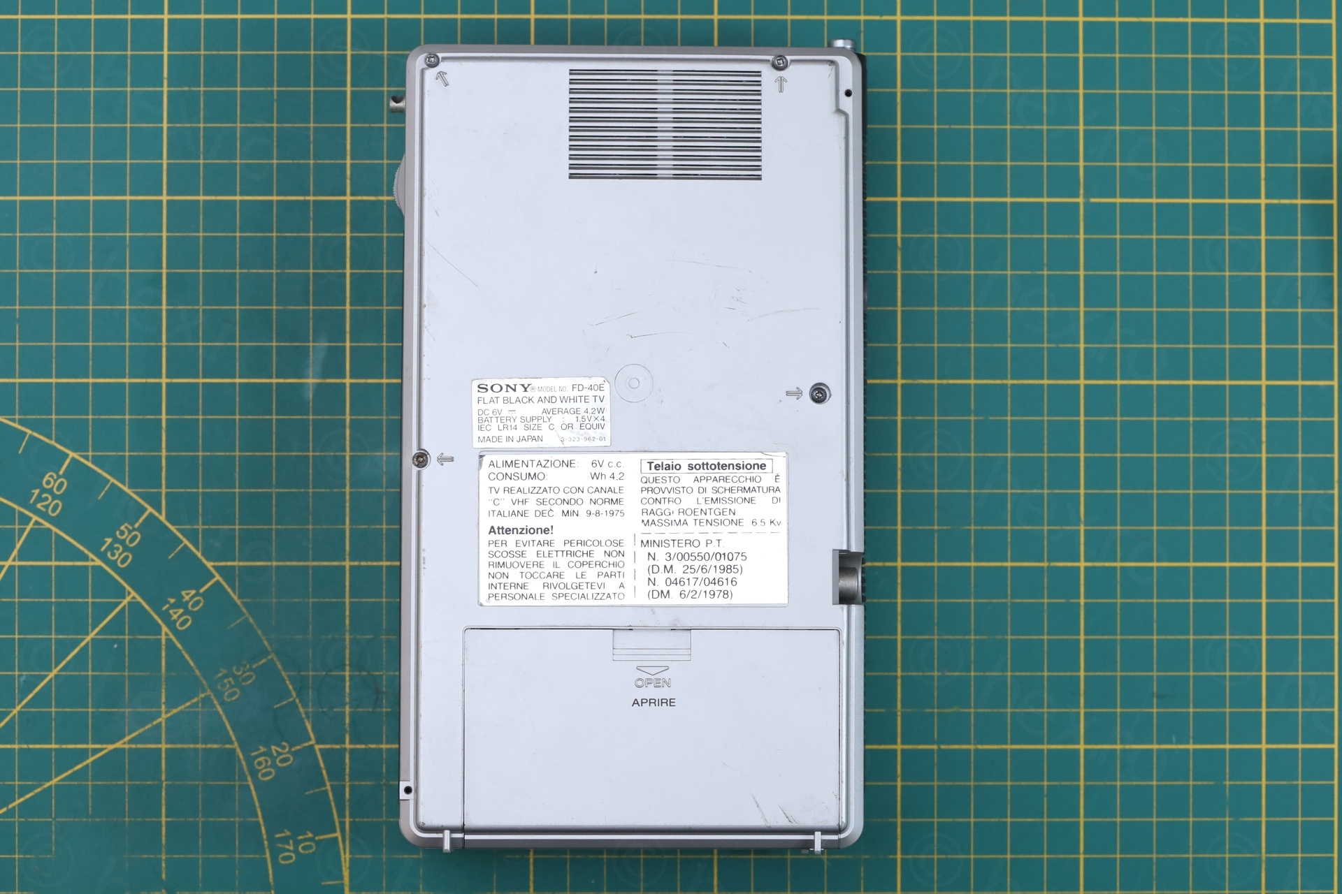 Surprisingly, the Sony FD-40E TV does not have an TV Antenna input jack, even if it seems to be the only one like this. All the other Sony FD-40 TVs seem to have it, except this one that has a plastic mask and no jack installed: