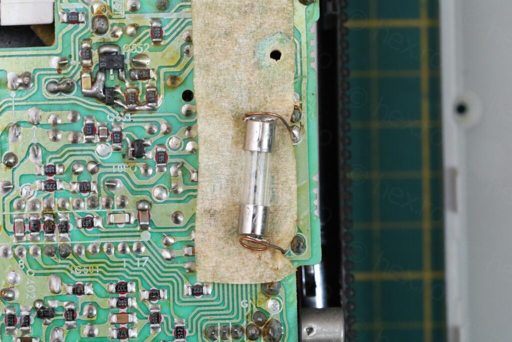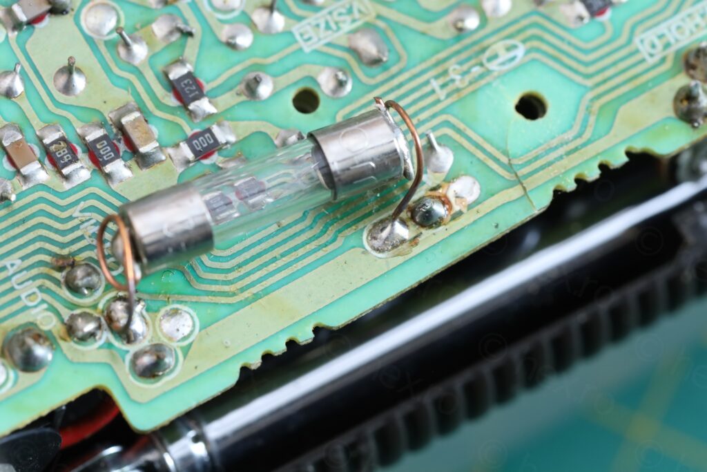 I thought that the case was forced down onto the fuse, cracking the board – but I have a hard time imagining somebody going through the pain of re-soldering a fuse but not paying attention when putting the case back. Most likely this thing was dropped some time after the fuse was installed.