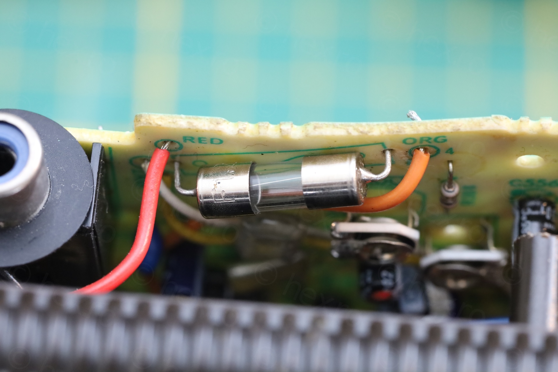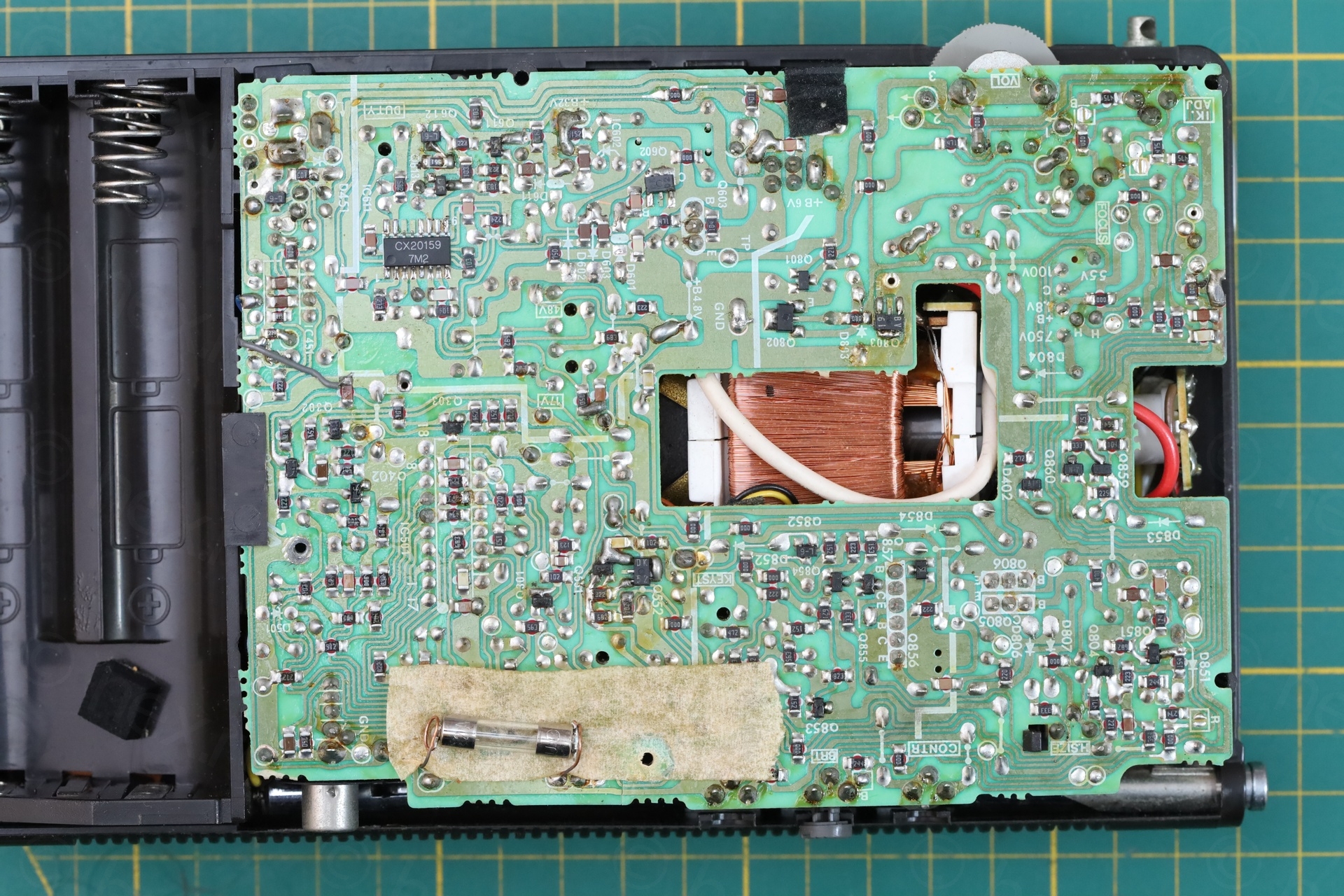 An additional challenge was to how to install it. The circuit board holes are spaced precisely at 20mm, but all 20mm fuse holders seem to have the pins at 22.5mm apart. Researching some videos showing the insides of Sony FD-40 TVs showed that the model did not have a holder, the fuse was soldered directly onto the circuit board.