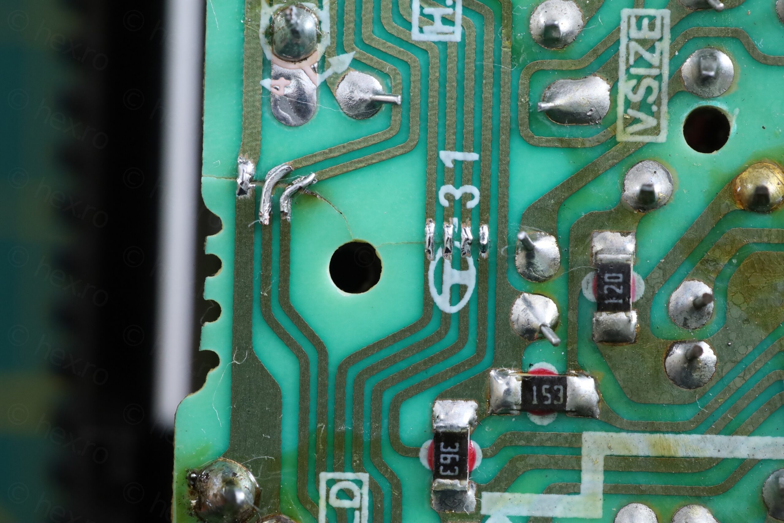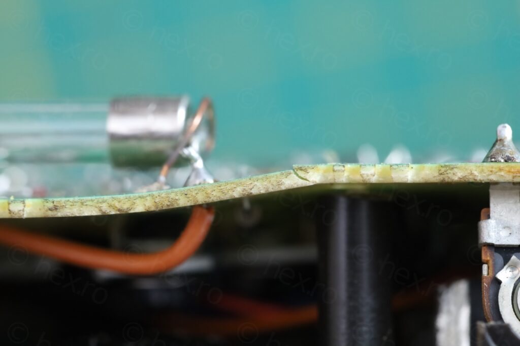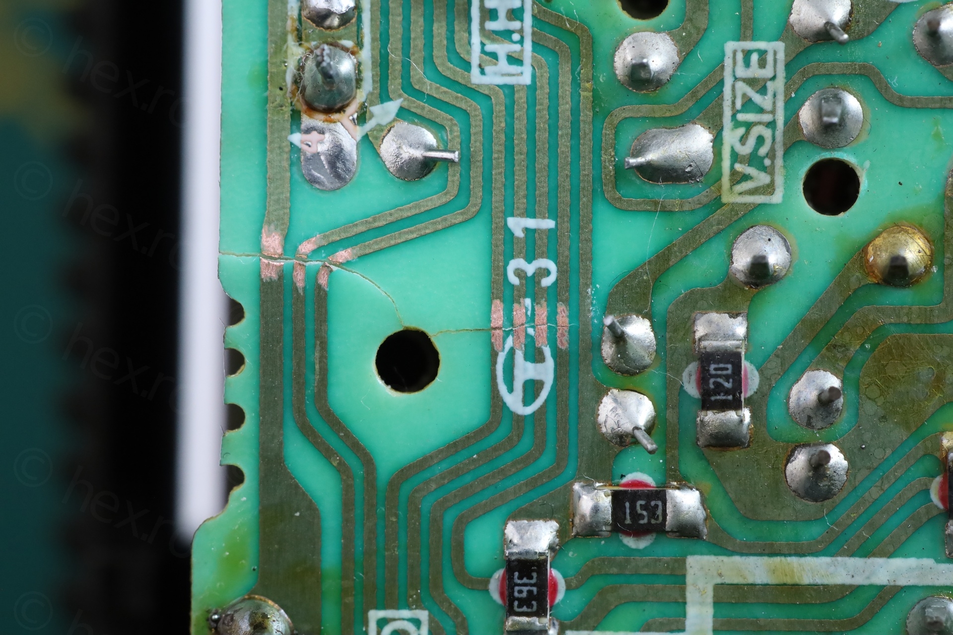 This would not be a problem in itself, however, the circuit board underneath was cracked. Some traces were cut: