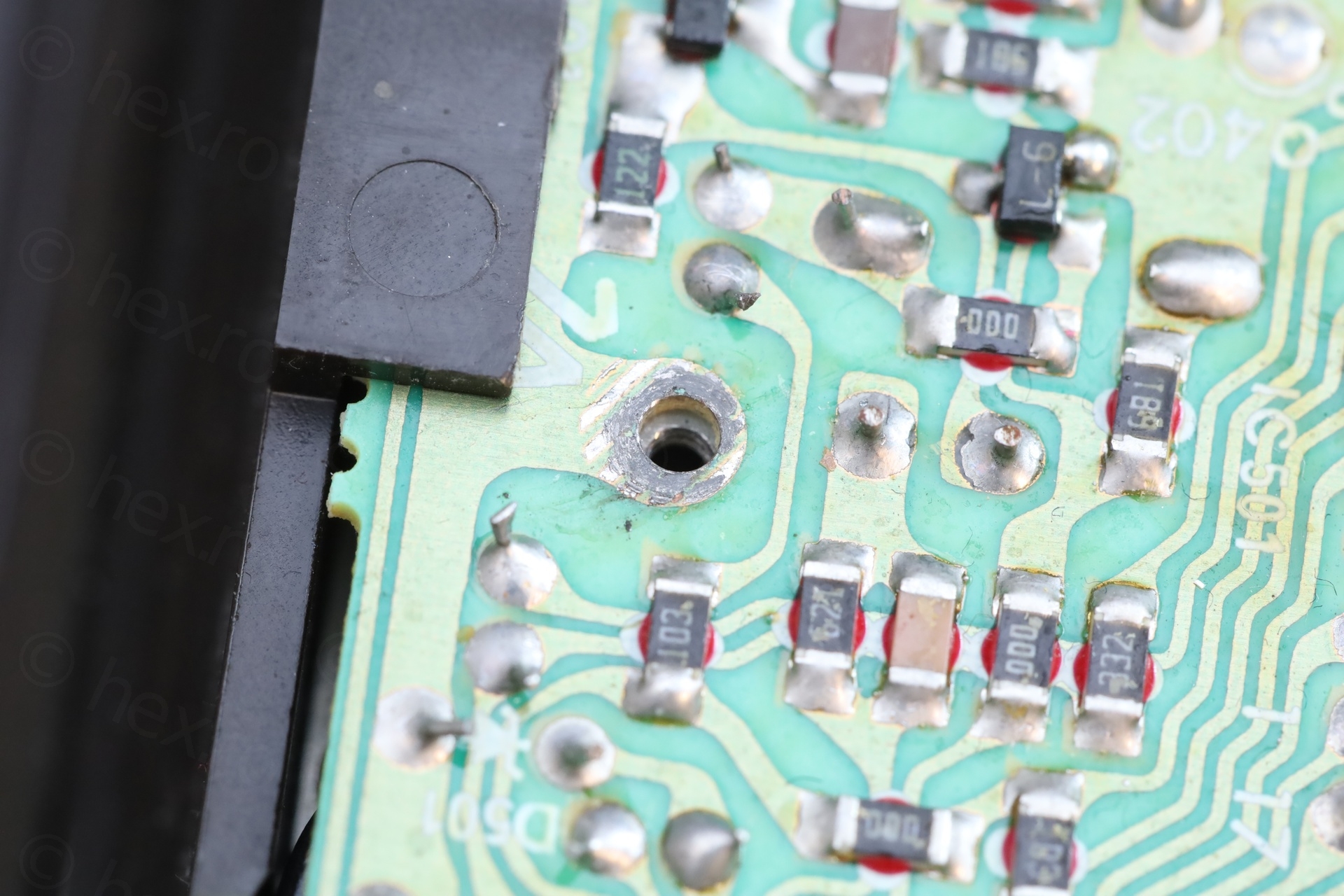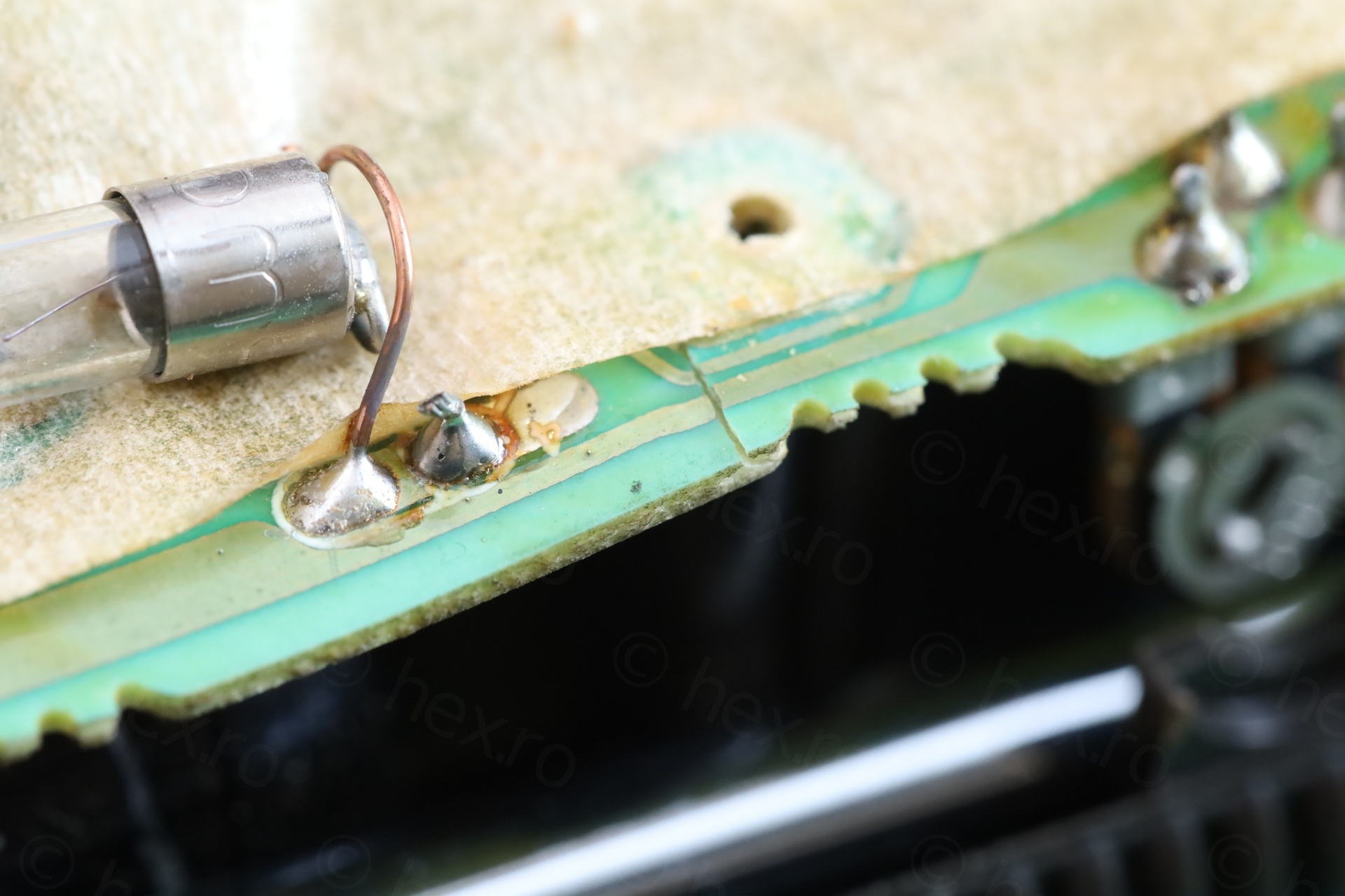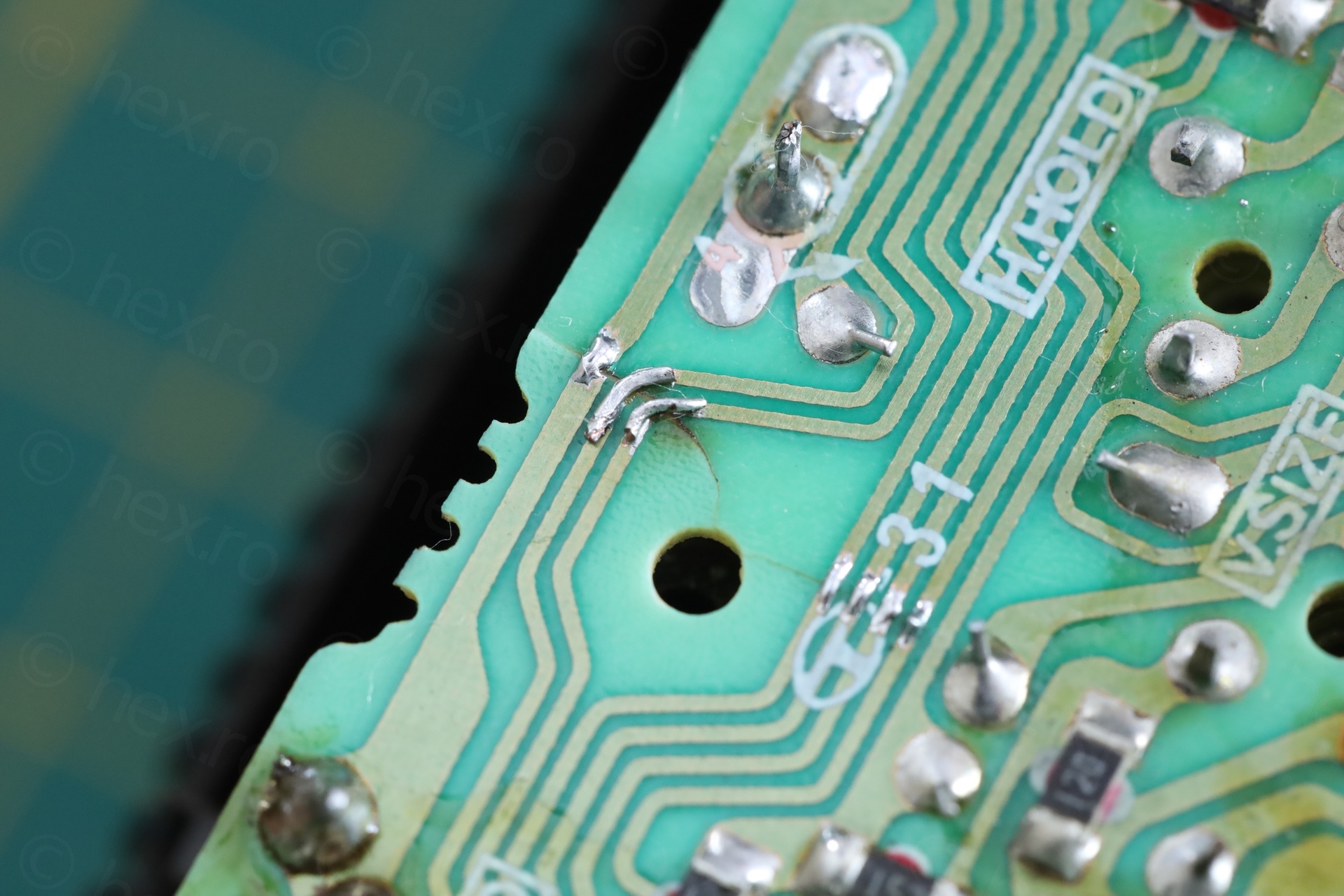 This would not be a problem in itself, however, the circuit board underneath was cracked. Some traces were cut: