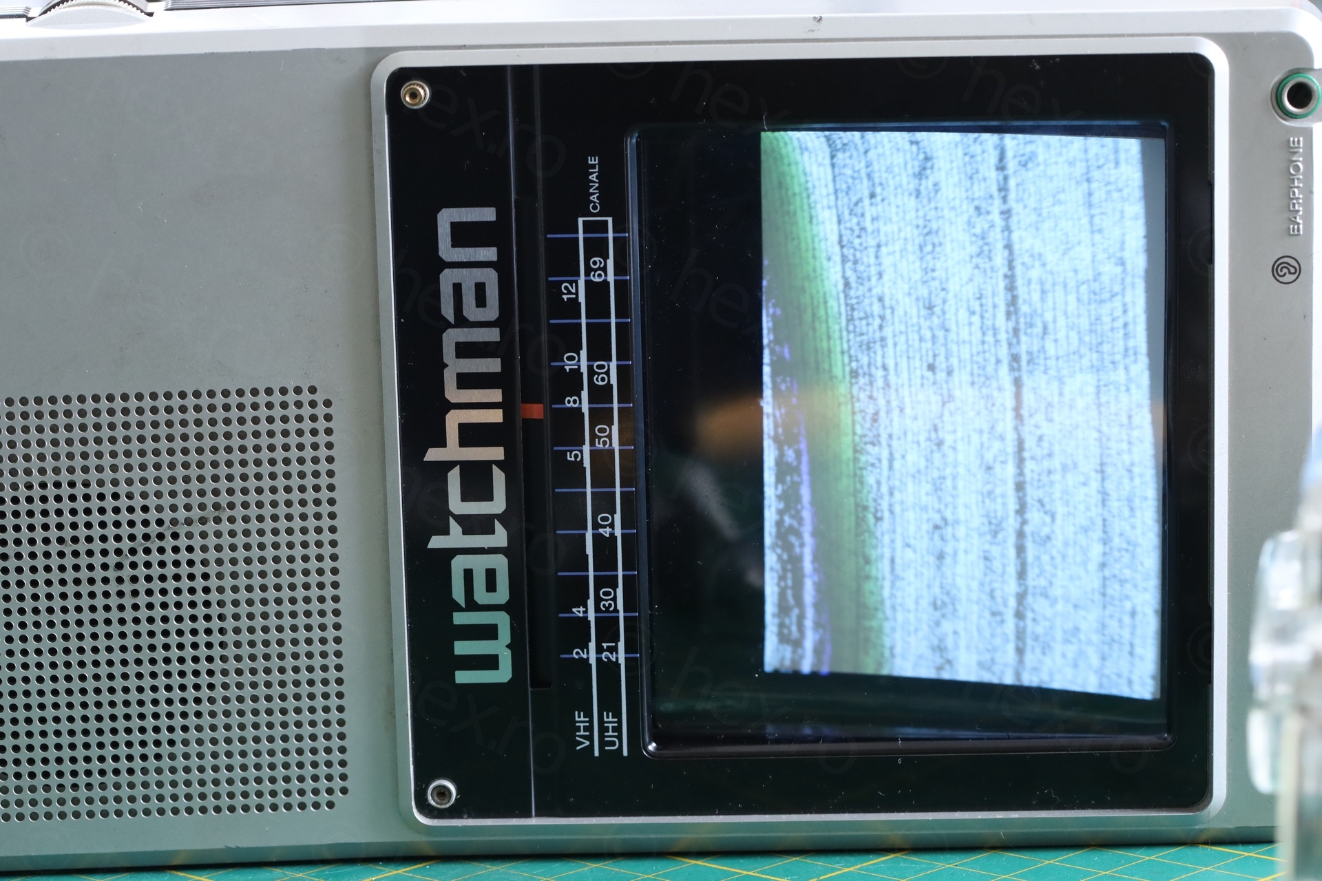 A cute TV that had a very hard life. It is now fixed. Too bad it has distorted image, but it is a hefty mini TV 🙂