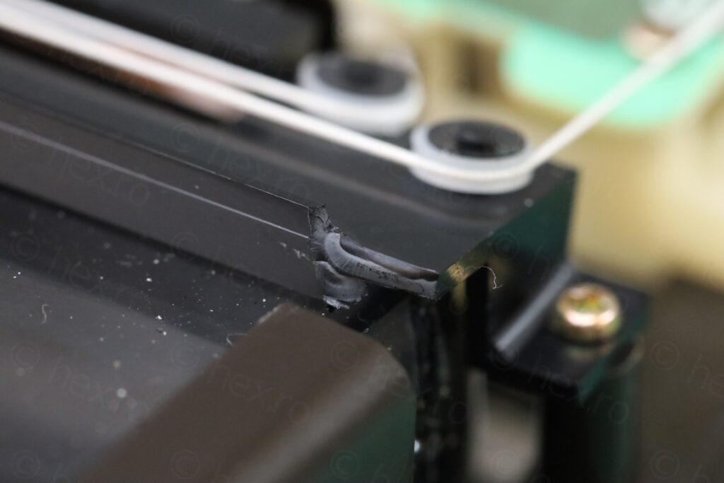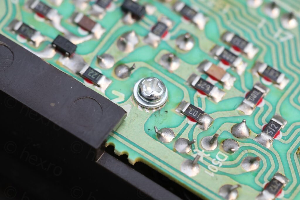 Last but not least, there was a screw missing that was supposed to hold the board attached to the chassis – but I didn’t have a short one. I improvised from a longer M2 screw: