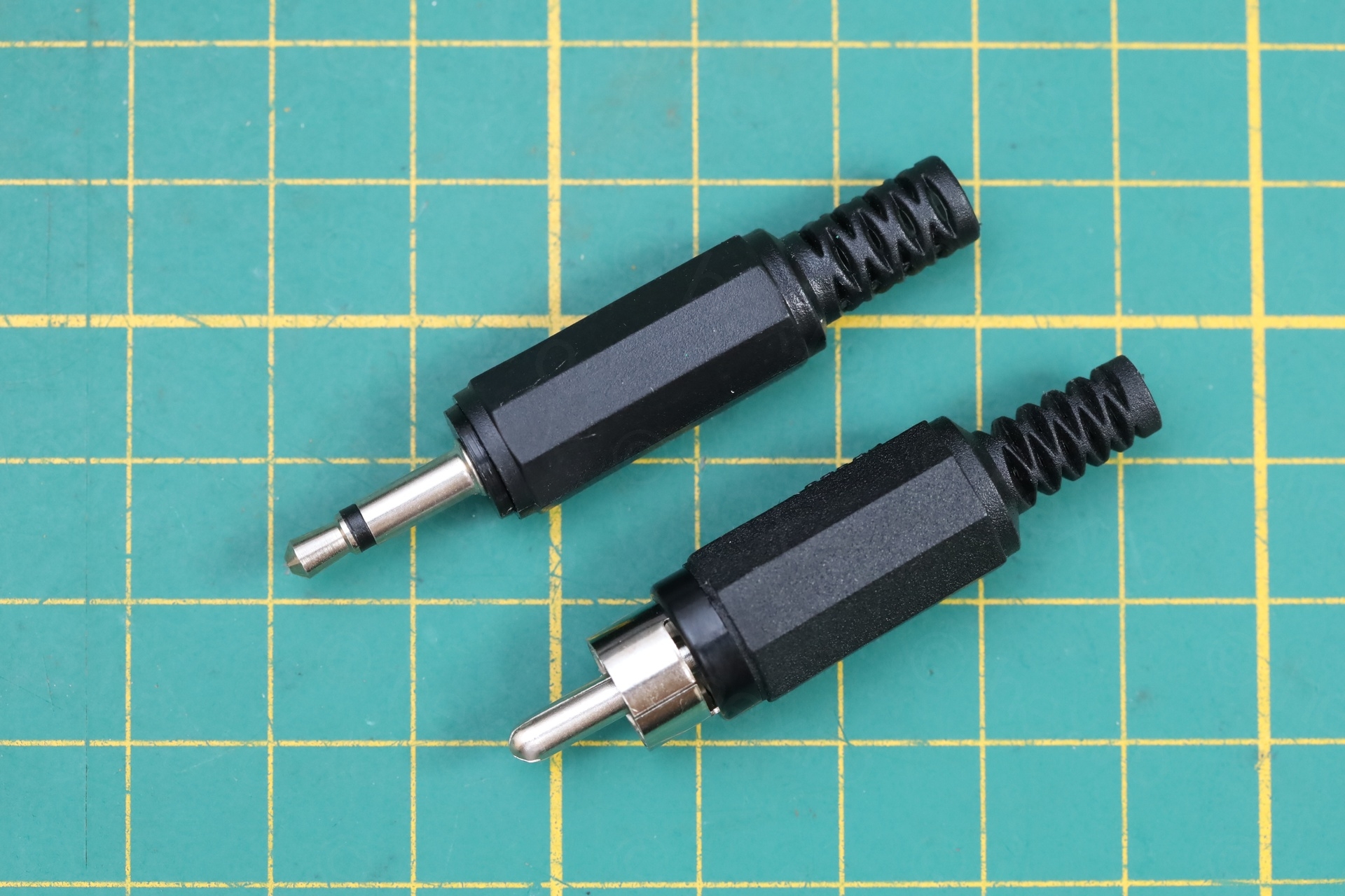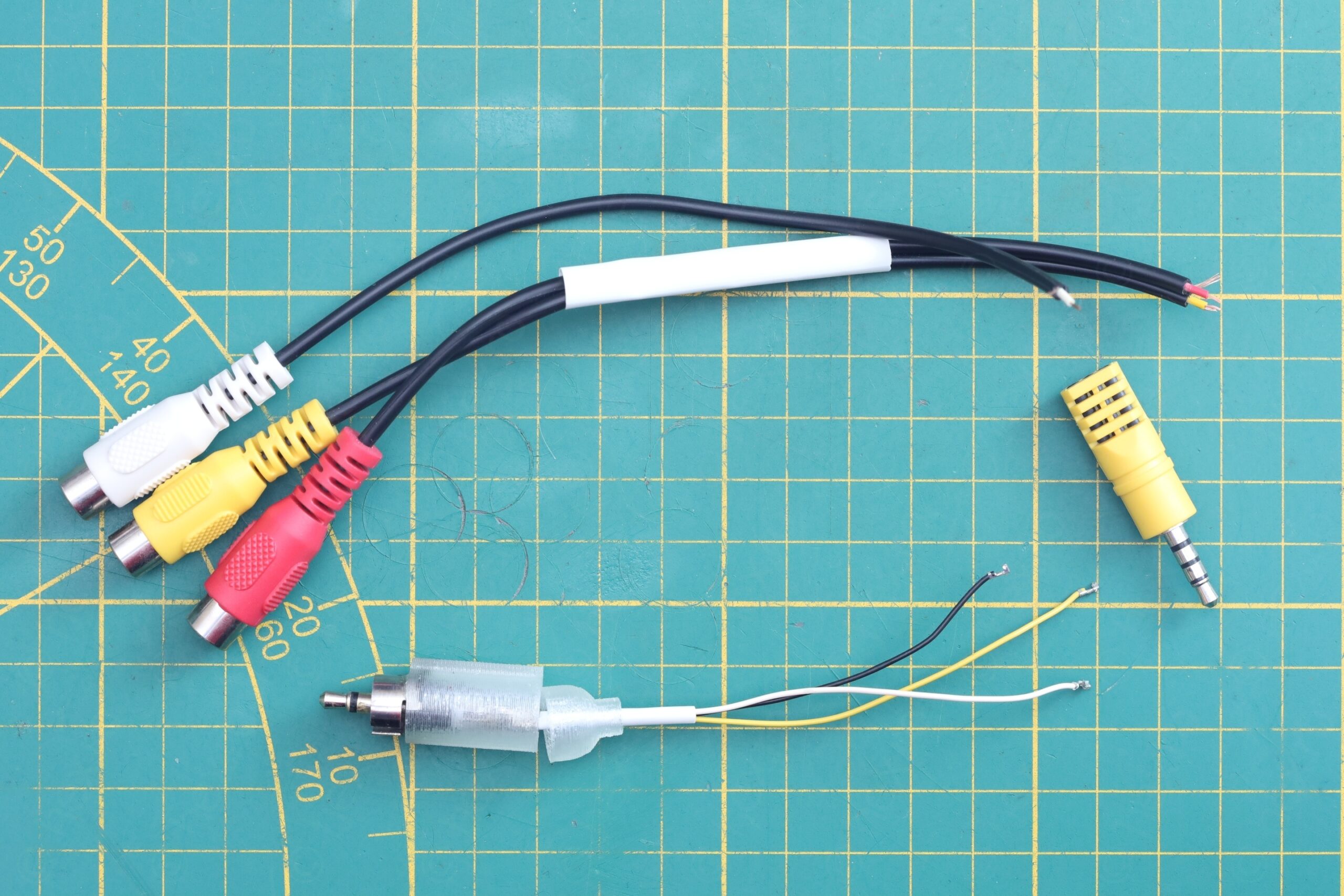 The tip of the 3.5mm jack will be the Audio input, and the sleeve will be the Video IN signal. I payed attention that the ground (the RCA ground ring) is soldered to both the RCA inputs (Video IN and Audio).