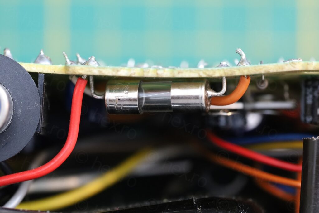 I was using 250C with normal solder – and apparently this was too much, as, the fuses themselves also seem to have some solder inside (probably the wire is soldered too, inside the caps). The last attempt was successful, since I decided to try using low melt solder with the iron set to 170C: